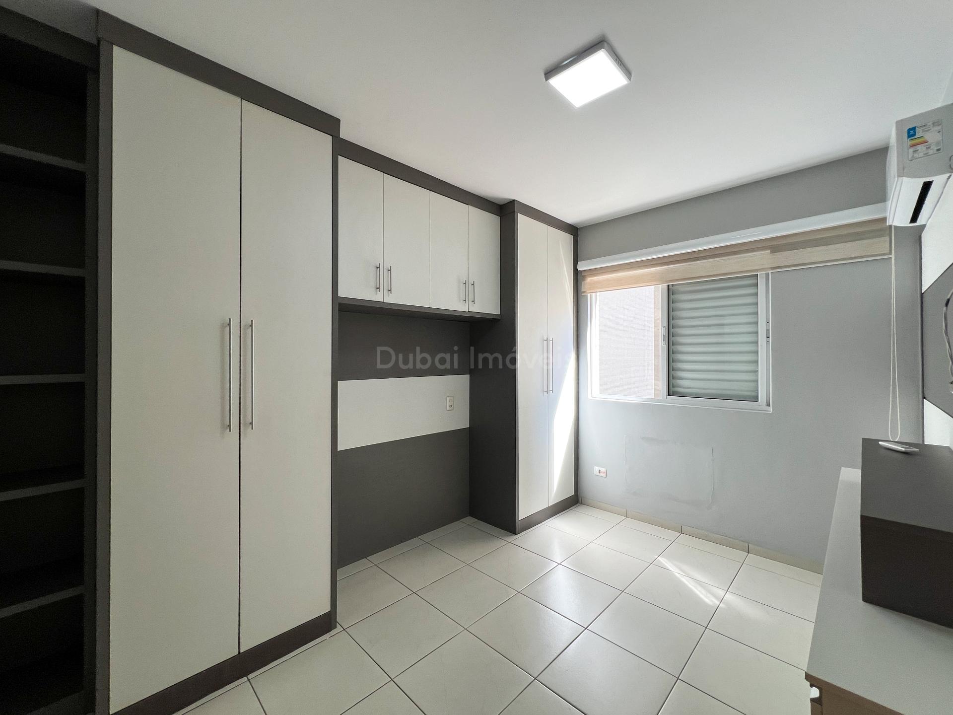 -1 quarto sendo suíte com armários planejados e ar-condicionado
