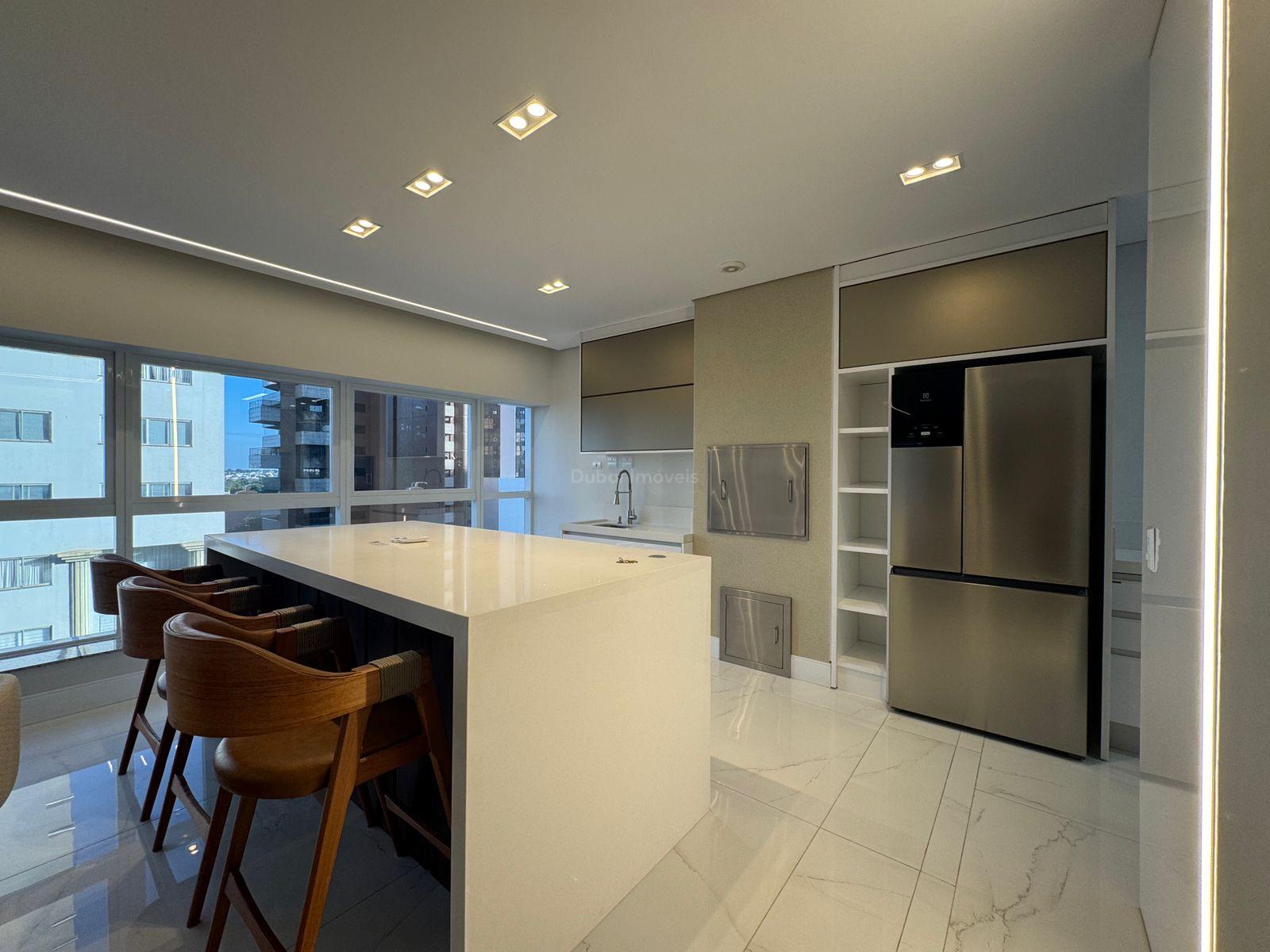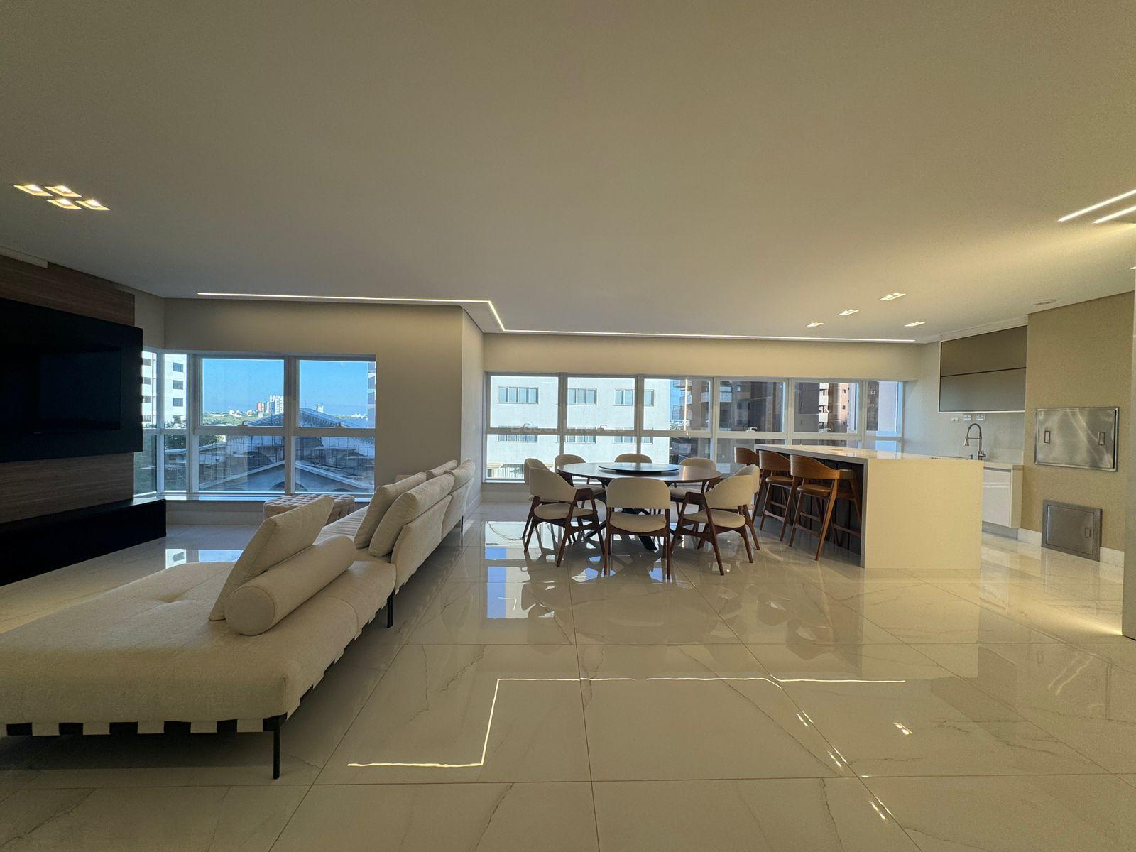 - Sala de estar e jantar conectadas a uma varanda gourmet sofisticada;