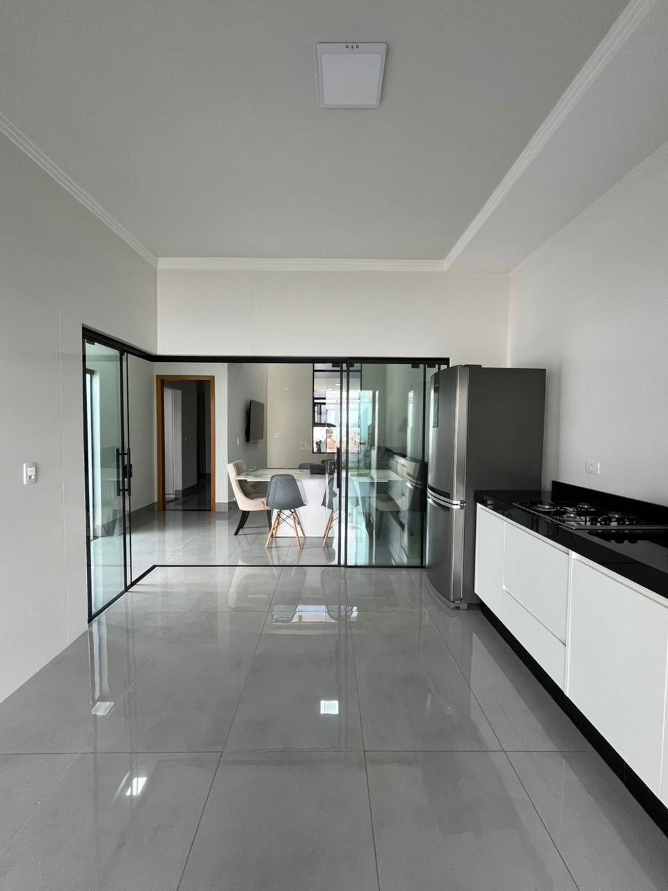 - Cozinha integrada à área gourmet, com fechamento em blindex