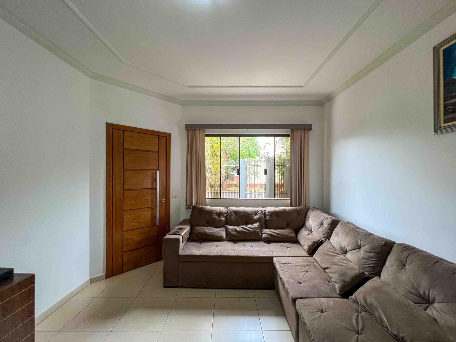 Casa com cômodos espaçosos, arejados e iluminação natural, energia fotovoltaica e um jardim com gramado impecável com árvores frutíferas.