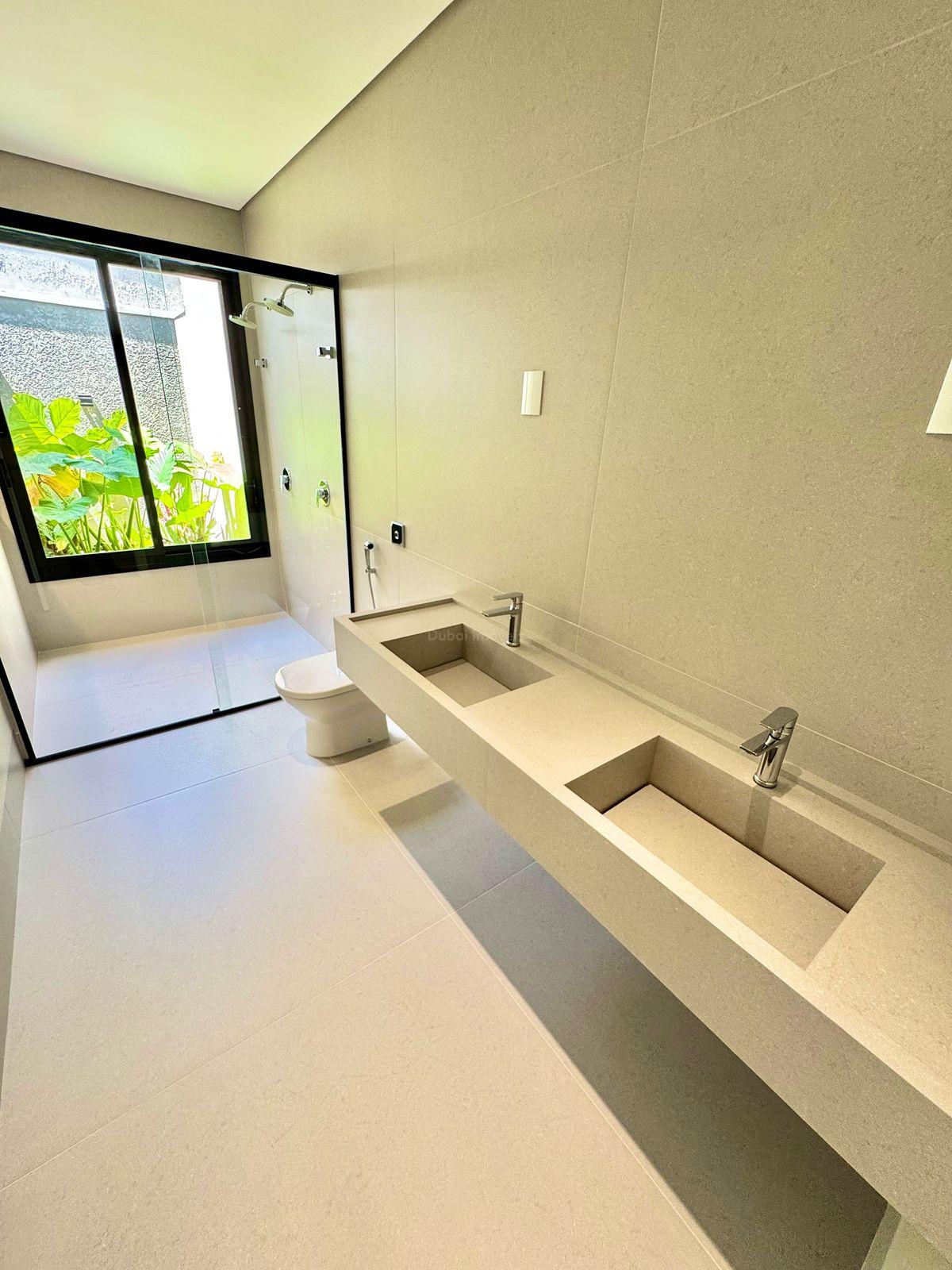 - Banheiro da suíte com duas pias e dois chuveiros