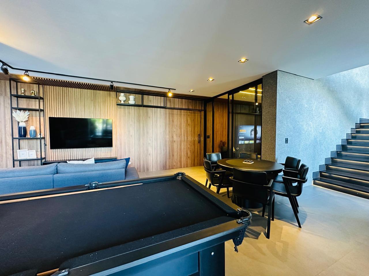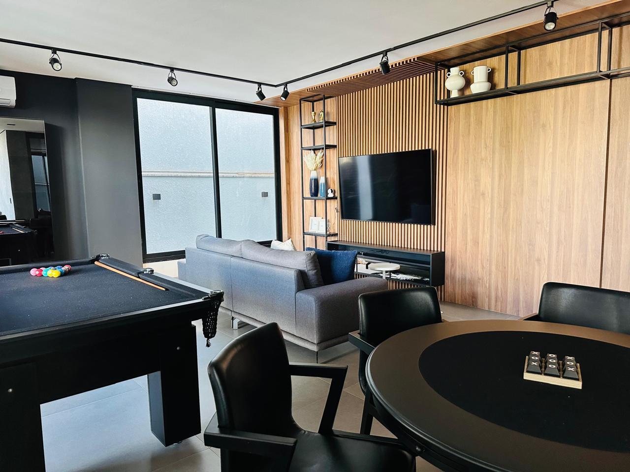 TV 86 na área gourmet, TVs 70 no Home e na sala de jogos, além de TVs nas suítes.